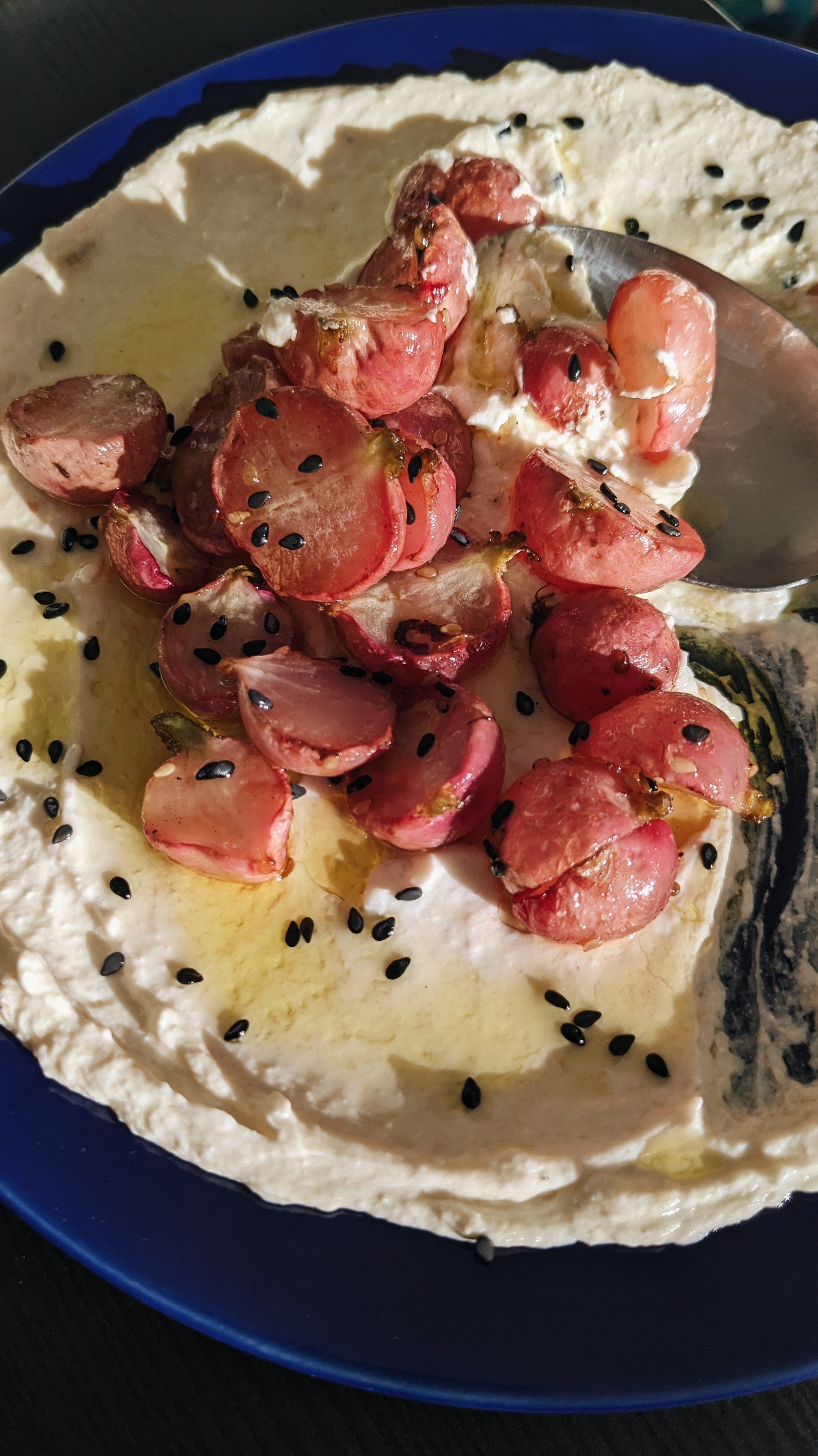 A RECIPE FOR ROASTED RADISHES + GARLICY KEFIR LABNEH