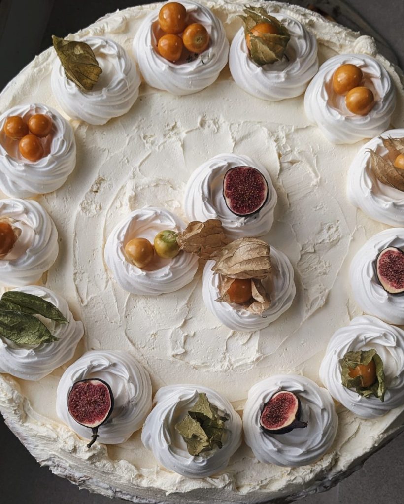 A luscious probiotic cream cake, to honour the harvest moon and the golden season of autumn.
